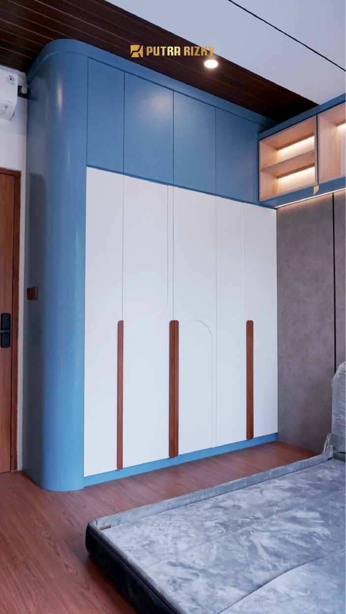 Pada lantai ini juga terdapat tiga kamar tidur anak dengan konsep yang disesuaikan berdasarkan karakter penghuninya. Kamar anak perempuan tertua tetap mempertahankan nuansa Classic Contemporer, selaras dengan estetika keseluruhan rumah. Sementara itu, dua kamar anak laki-laki yang lebih muda didesain dengan konsep Modern Minimalis, menciptakan ruang yang lebih simpel namun tetap fungsional dan stylish.