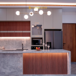 Tak hanya itu, lantai satu juga mencakup dapur kotor yang dirancang lebih fungsional, kamar tamu dengan desain yang nyaman bagi para penghuni sementara, serta kamar utama yang mengusung konsep Classic Contemporer, memberikan ruang istirahat yang eksklusif dan berkelas. Area bawah tangga pun dimanfaatkan secara maksimal dengan menghadirkan seating area tambahan, yang tidak hanya menambah estetika tetapi juga meningkatkan fungsionalitas ruang.